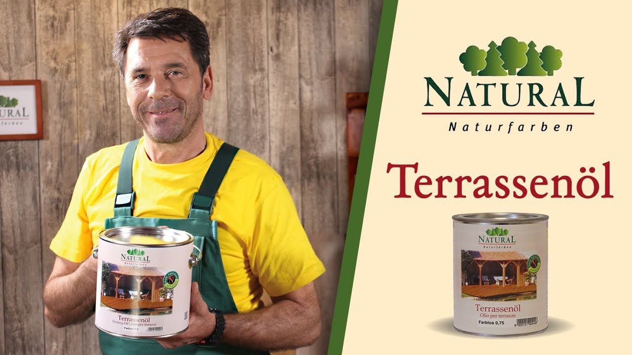 Holz.Natural Terrassenöl gibt es in den Naturfarben Bangkirai, Douglasie, Lärche, Holzgrau, Lichtgrau und Farblos.verschiedene Farbtönetrittfeste Oberflächewasser- und schmutzabweisendUV-Schutz bei den Terrassenölen Bangkirai, Douglasie und Lärcheproblemlos verarbeitbarTerrassenöl ist bienenfreundlichreduziert die Gefahr von Moosbildunghärtet austrocknet auch als Schichtbienenfreundlicheinfache Nachpflegesehr ergiebigEigenschaftenTiefenschutz:Das Terrassenöl von Natural Naturfarben ist so dünn eingestellt, dass es tief in das Holz eindringt und es elastisch und frisch hält. Das Holz kann aufgrund des offenporigen Anstriches “atmen“ und nimmt nicht mehr soviel Feuchtigkeit in sich auf. Das Quellen bzw. Schwinden von Holz wird vermindertOberflächenschutz:Gleichzeitig erzeugt das Terrassenöl auch eine dünne, aushärtende Schicht aus Naturharzen auf der Obefläche. Aufgrund der wertvollen, natürlichen Balsam- und Pflanzenöle kann der Anstrich weder reißen noch abplatzen. Zur Auffrischung einfach dünn überstreichen.UV-Schutz vor Vergrauen:Die feingeriebenen Pigmente ziehen mit in die Holzfaser ein oder werden auf der Oberfläche mit dem Naturharz gebunden. Nur Farbpigmente geben auf Dauer einen sinnvollen UV-Schutz vor Vergrauung.Vorbereitung:Das Terrassenholz muss sauber und trocken sein (max. Holzfeuchte 20%). Alte Anstriche mit dem Intensivreiniger säubern oder bei glatten Oberflächen leicht anschleifen.Vergraute Terrassedielen mit dem Holzauffrischer Antigrau behandeln.